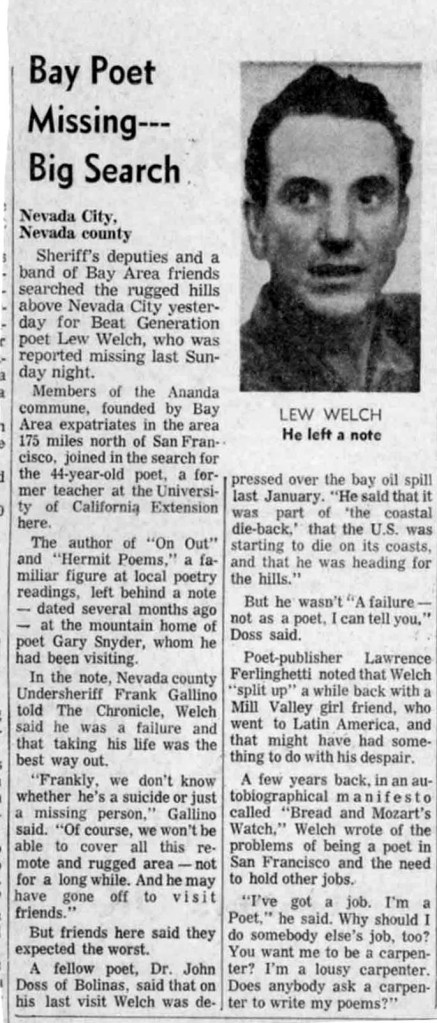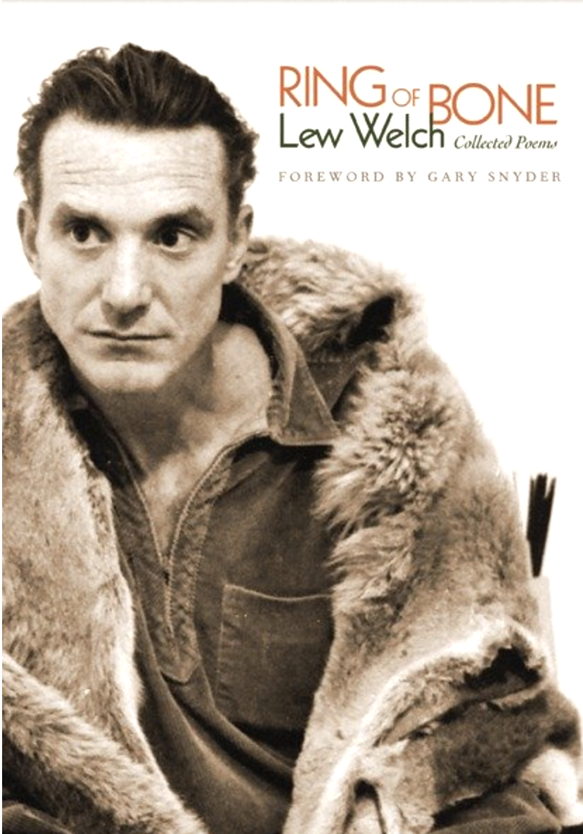 He frowns, goes to a bookcase, pulls a book out and hands it to me. It’s Ring of Bone, Welch’s collected poems. There’s a photo of the real Lew on the cover, he’s wearing some kinda fur, and the old Hank does bear a certain uncanny resemblance.