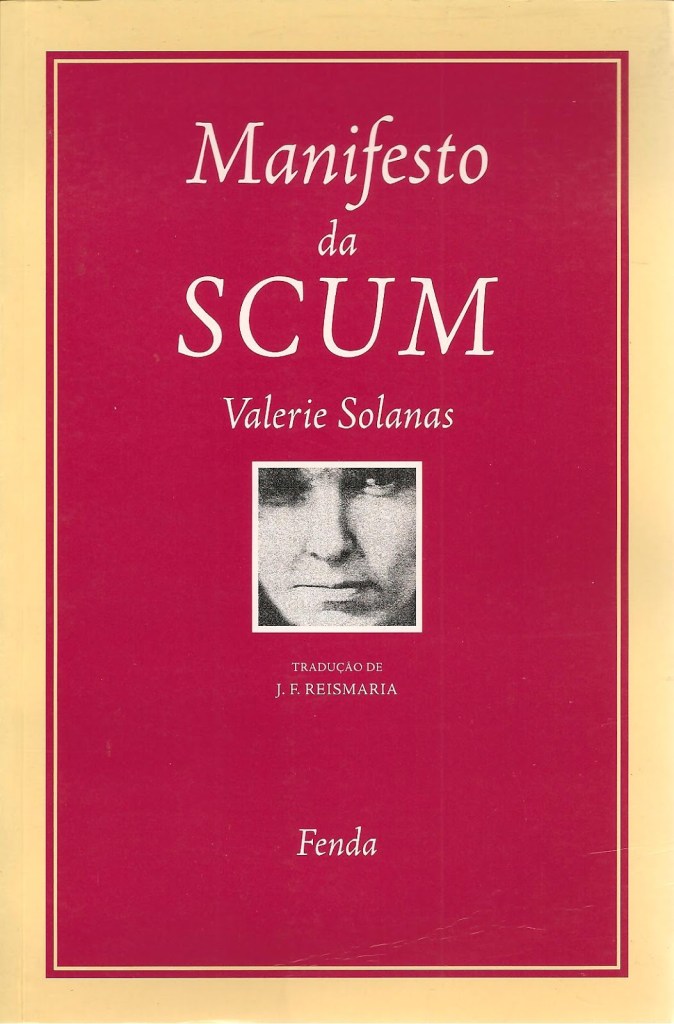 “Yeah, well, so’s the DoN’s take on reality.” It seems improbable, but Rimbaud was a man, after all, and why wouldn’t Solanas like to kick a one-legged man when he’s down, reduced to gun-running in Africa, which I assume for Solanas is standard evil-guy fare. But never mind, we’re in action: I skid to a stop by the chopper, charge into it like a post-woman possessed and, yes! there’s Earline’s camo backpack to match her camo bullwear. I’m on my knees rifling through it outside the tow, Jen filming this, G leaning over my shoulder, and, yes! I pull out a rumpled bunch of stapled pages, presumably printed off the Internet, and . . . it’s a buncha bulletins from the DoN news group, fuck me. I rummage a bit more, I pull out a little red book, about passport size and very skinny, like Chairman Mao had almost nothing to say, and I am holding the SCUM Manifesto! It’s got an embossed gold title on the cover with a “Compliments of the Daughters of Nausicaa” on the bottom like they distribute these at Girl Scout meetings. Maybe you can get a merit badge in castration. I flip through it madly and, lo and behold, I come upon the line: “the influence of Rimbaud on symbolist painting,” and in this paragraph are other words from my recitation like “pandering,” “company” and “animalism,” and G, after a moment’s study, has to agree with me, what I said was a garbled version, a cut-up, perhaps, of a small section of Solanas’ cri de queer. I hate that word, but I like this pun.