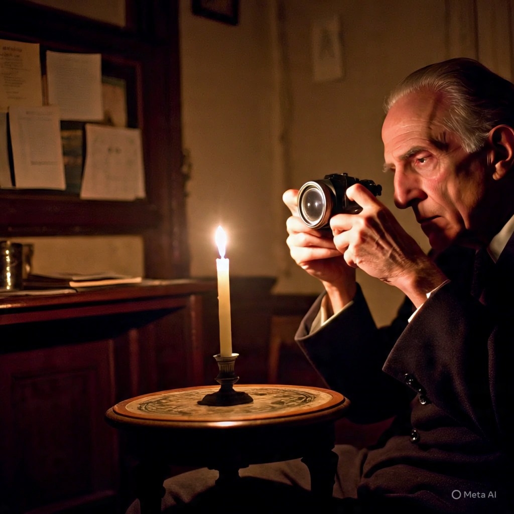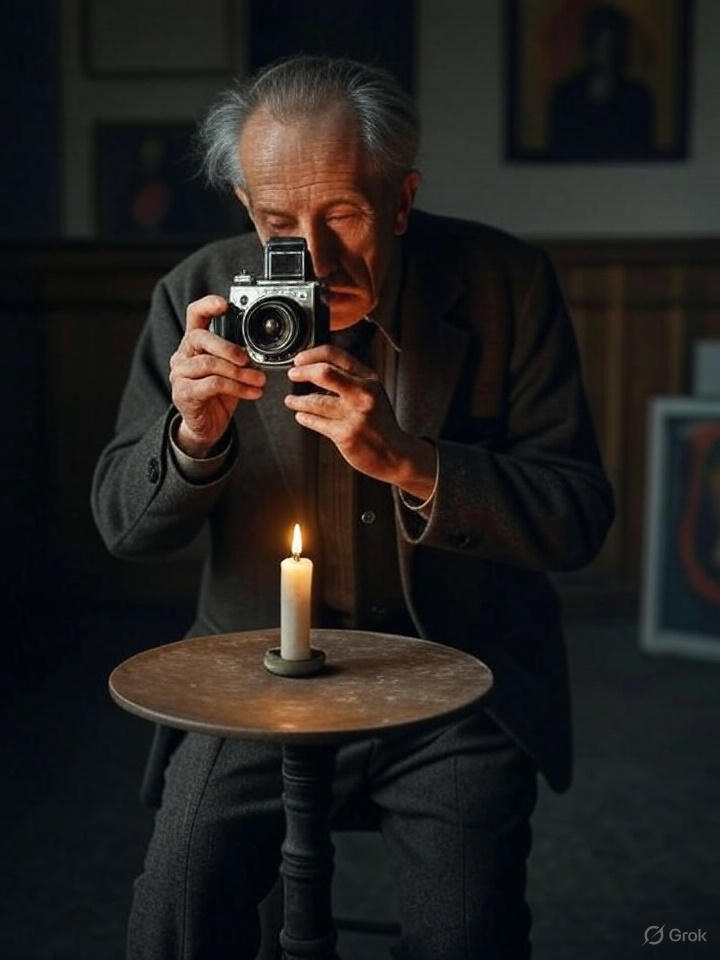 They take an extremely literal photographic approach in which the usual older man who bears no resemblance to Duchamp is actually photographing a candle with an oddly proportioned, seemingly old-school camera—though in neither image is he actually pointing the camera at the candle—amid a background that encapsulates little more than a room. Did Duchamp actually ever tack papers to a bulletin board? We can only pray, no.